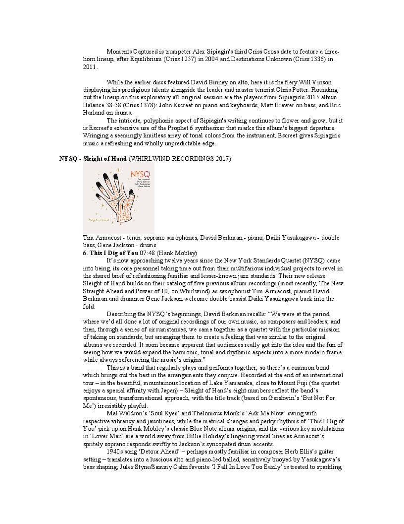 The songs come wrapped in obscure titles like “The New Fragrance,” “How to Dice an Onion,” and “Moustache,” and those are just the ones in English. While they flow seamlessly together, each piece has its own identity. “We wanted every song to have it's own strong mood,” they say. “It was not the idea to feature extended solos, but to feature a strong sound as a band.”