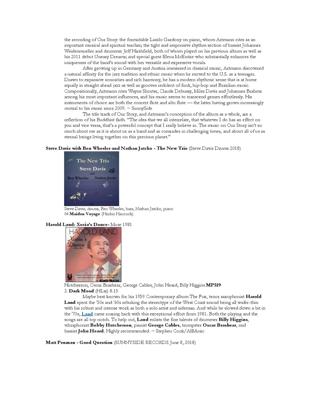 These are the 22nd annual honors for excellence in music and music journalism conferred by the JJA, an international professional organization of writers, photographers, broadcasters, videographers and new media content providers. Recipients of awards in 39 categories were chosen by JJA voting members. Most musicians will receive their engraved statuettes in front of their audiences at U.S. performances during the summer. Awards for media-related work will be presented at the 2018 Jazz Awards party, a fundraiser for the non-profit JJA, open to the public, at the New School in NYC on June 12, 2018.
